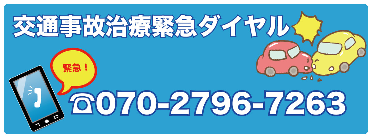 保険会社に連絡をしていただいてから、当院で身体の状況を診させていただきますのでご連絡をお願いします。交通事故直後に強い痛みが出ない場合や、軽い痛みでもそのままにしておくと長期化する可能性があるので早めの治療が重要です。当院では治療内容、治療計画、補償の手続きなどのアドバイスをさせていただきます。